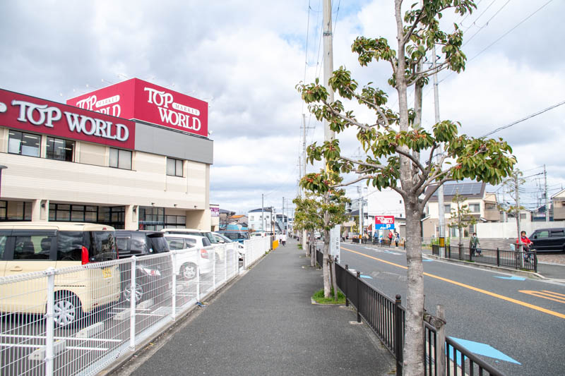 こっちに行くとパチンコひまわりやアカカベが。そのそばの交差点から関西外大前をとおるバス通りの方へ。