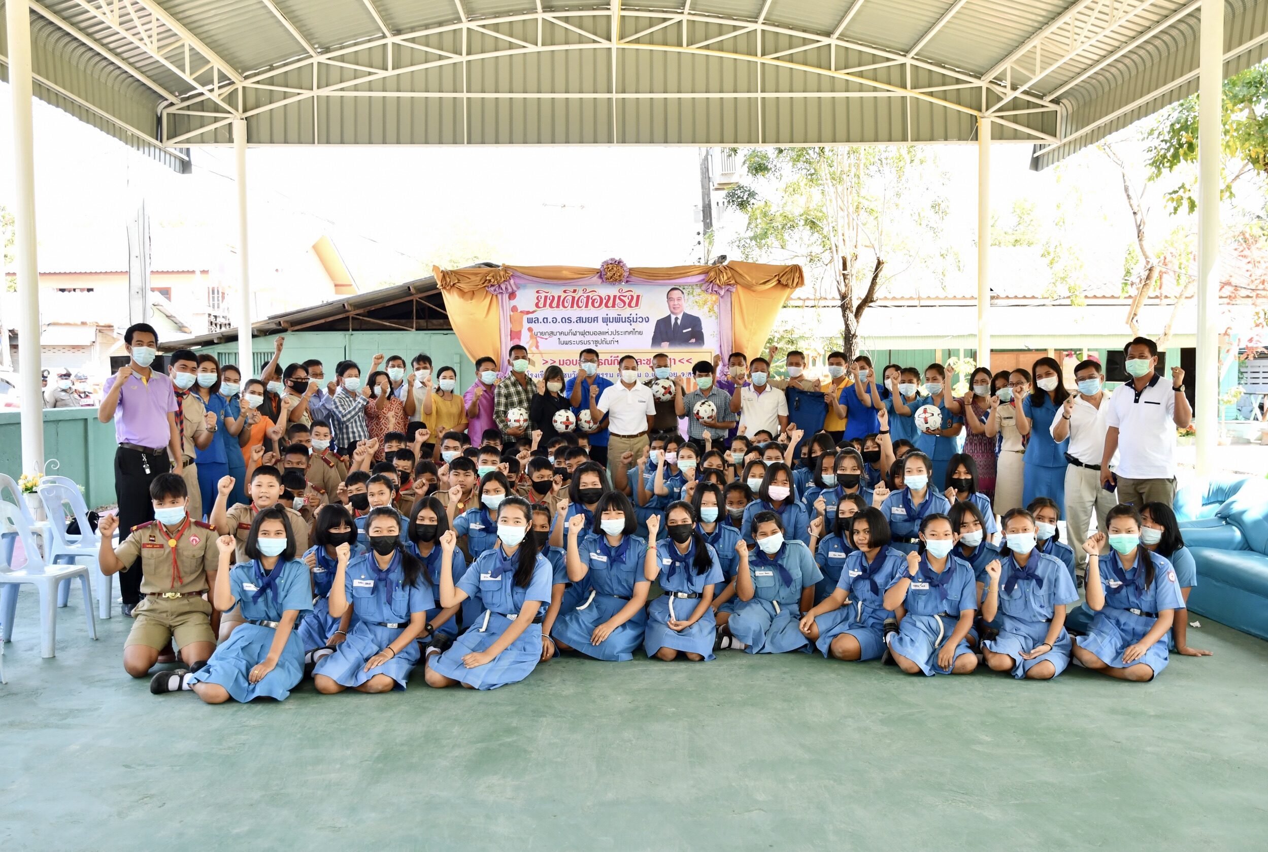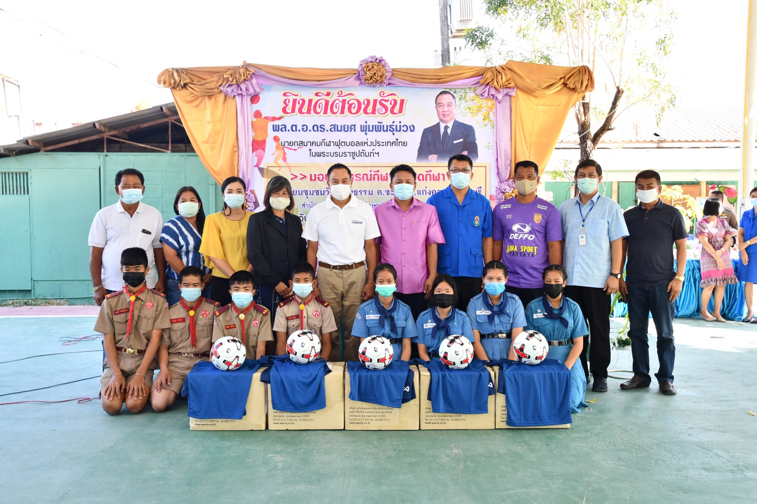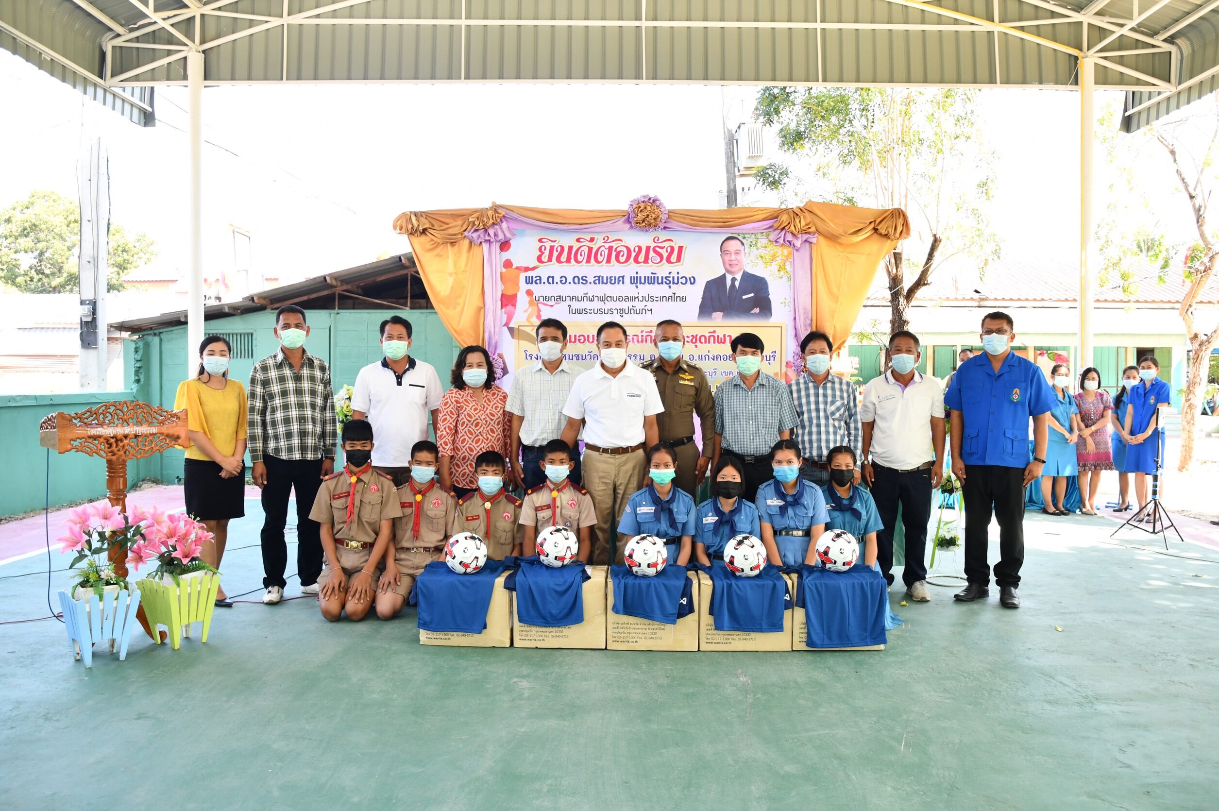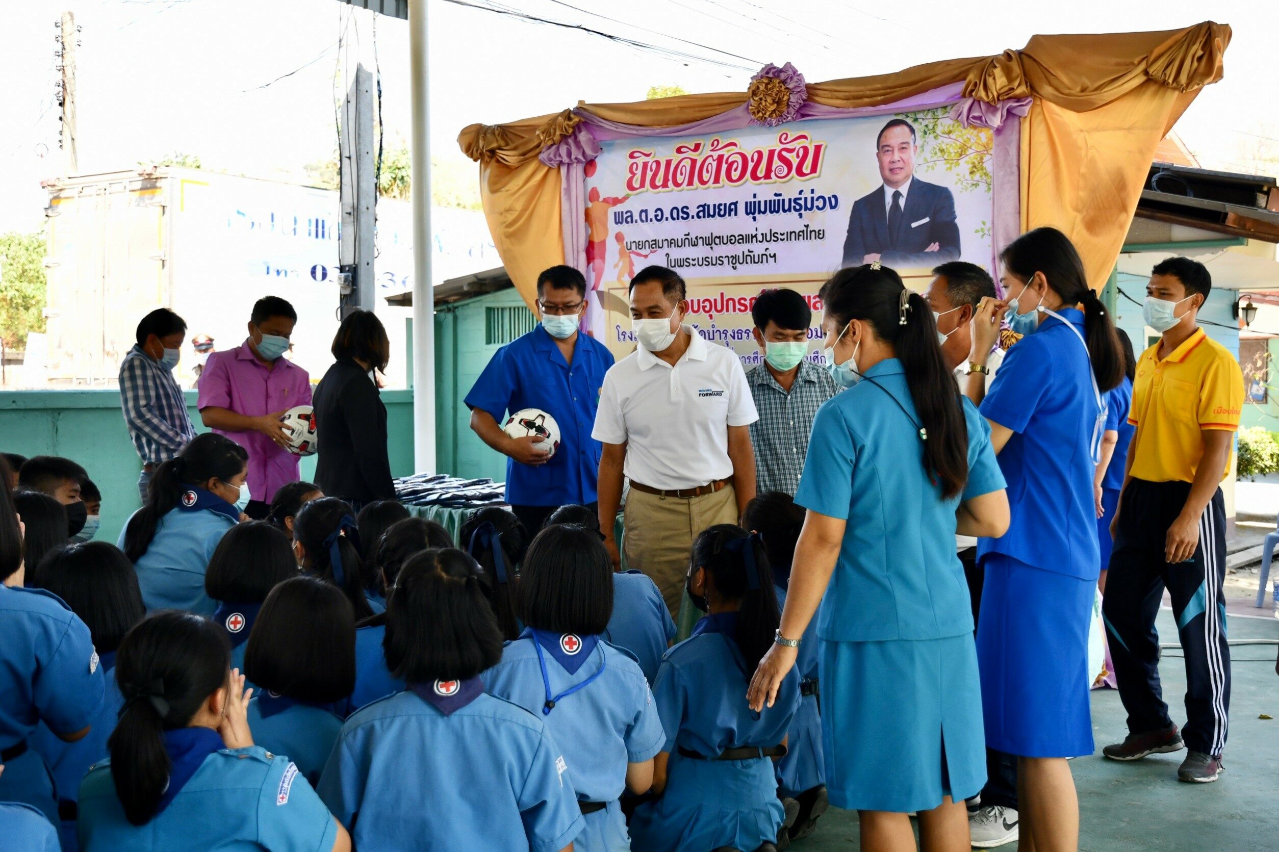 “บิ๊กอ๊อด” พล.ต.อ.ดร.สมยศ พุ่มพันธุ์ม่วง นายกสมาคมกีฬาฟุตบอลแห่งประเทศไทยฯ มอบอุปกรณ์กีฬาและชุดกีฬา เพื่อสร้างแรงบันดาลใจให้แก่เด็กและเยาวชน โรงเรียนชุมชนวัดบำรุงธรรม ต.ชะอม อ.แก่งคอย จ.สระบุรี สำนักงานเขตพื้นที่การศึกษาสระบุรี เขต 2 เมื่อวันที่ 11 กุมภาพันธ์ 2564